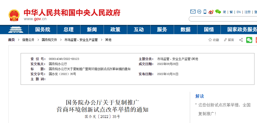近日,國務院辦公廳發(fā)布關于復制推廣營商環(huán)境創(chuàng)新試點改革舉措的通知。一是進一步破除區(qū)域分割和地方保護等不合理限制,“清除招投標和政府采購領域對外地企業(yè)設置的隱性門檻和壁壘”,二是健全更加開放透明、規(guī)范高效的市場主體準入和退出機制,三是持續(xù)提升投資和建設便利度,“推進社會投資項目‘用地清單制’改革”、“分階段整合相關測繪測量事項”、“推行水電氣暖等市政接入工程涉及的行政審批在線并聯(lián)辦理”、“開展聯(lián)合驗收‘一口受理’”、“進一步優(yōu)化工程建設項目聯(lián)合驗收方式”、“簡化實行聯(lián)合驗收的工程建設項目竣工驗收備案手續(xù)”、“對已滿足使用功能的單位工程開展單獨竣工驗收”等。四是更好支持市場主體創(chuàng)新發(fā)展,五是持續(xù)提升跨境貿易便利化水平,六是維護公平競爭秩序,七是進一步加強和創(chuàng)新監(jiān)管,八是依法保護各類市場主體產(chǎn)權和合法權益,九是優(yōu)化經(jīng)常性涉企服務。