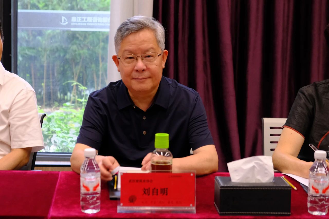 6月18日,武漢建筑業協會常務副會長劉自明、秘書長李紅青一行到訪鼎正調研交流。鼎正董事長王雁然、技術總監朱立冬、副總經理彭亮出席座談會并熱情接待。