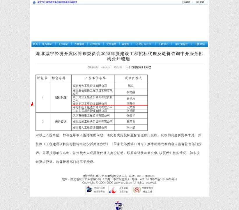 【經(jīng)營成果】我司入圍湖北咸寧經(jīng)濟(jì)開發(fā)區(qū)管理委員會2015年度建設(shè)工程招標(biāo)代理及造價咨詢中介服務(wù)機(jī)構(gòu)庫招標(biāo)代理單位