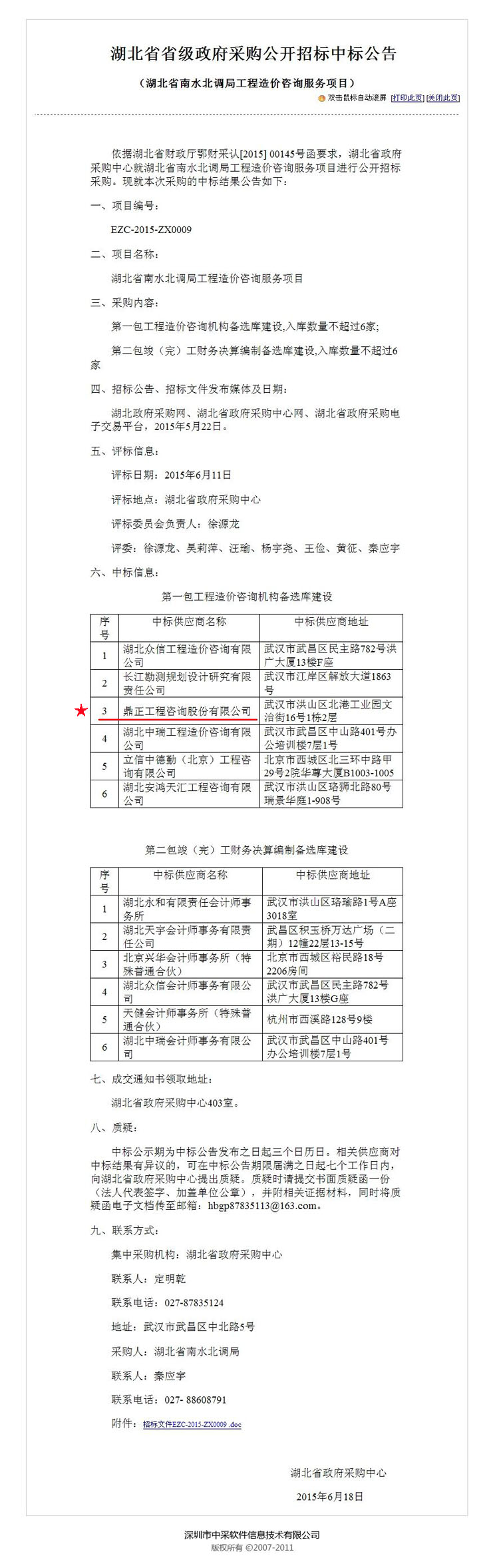 【經營成果】我司入選湖北省南水北調局工程造價咨詢機構備選庫