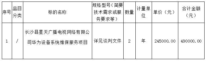 長沙縣星天廣播電視網絡有限公司華為設備系統維保服務項目談判成交公告