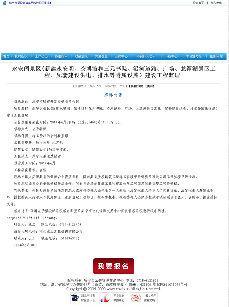 永安閣景區(新建永安閣、茶博館和三元書院、沿河道路、廣場、龍潭湖景區工程、配套建設供電、排水等附屬設施)建設工程監理