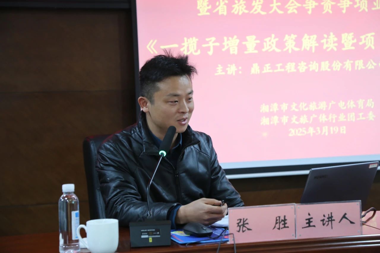 為搶抓增量政策窗口期,提升地方政府項目謀劃儲備質(zhì)量和項目謀劃水平,精準(zhǔn)擴大有效投資。3月19日,鼎正湖南分公司前期咨詢部總經(jīng)理張勝應(yīng)湘潭市文旅廣體局之邀,為湘潭市文旅系統(tǒng)開展《一攬子增量政策解讀暨項目謀劃申報》的專題培訓(xùn)。