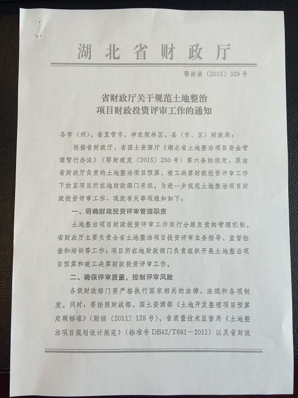湖北省財(cái)政廳關(guān)于規(guī)范土地整治項(xiàng)目財(cái)政投資評(píng)審工作的通知