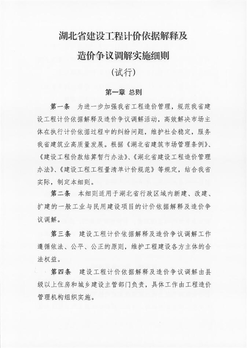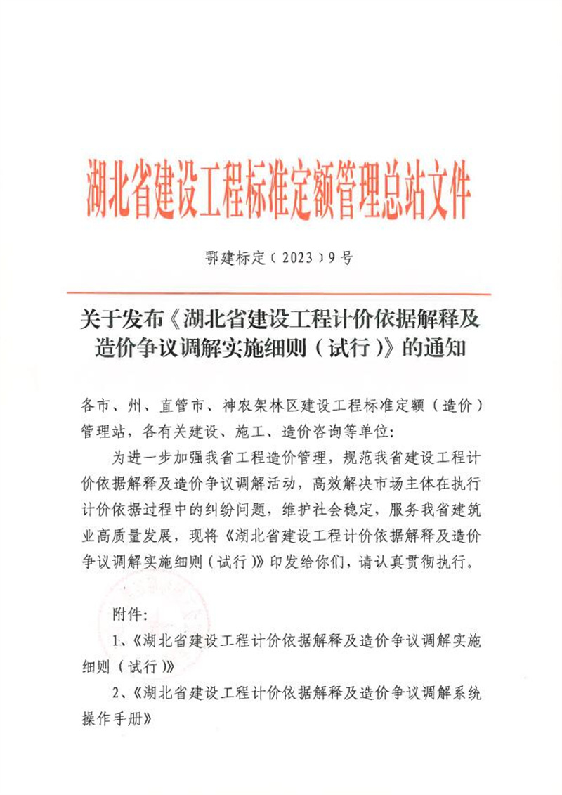 轉(zhuǎn)發(fā)關(guān)于發(fā)布《湖北省建設(shè)工程計(jì)價(jià)依據(jù)解釋及造價(jià)爭議調(diào)解實(shí)施細(xì)則(試行)》的通知